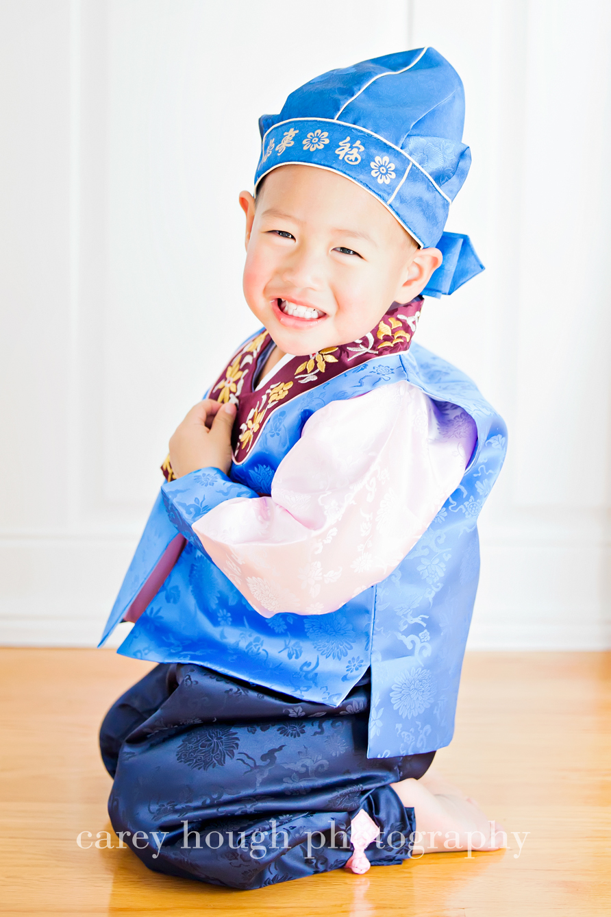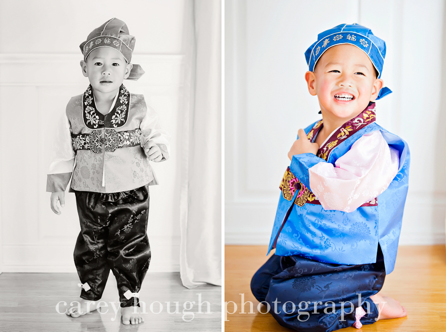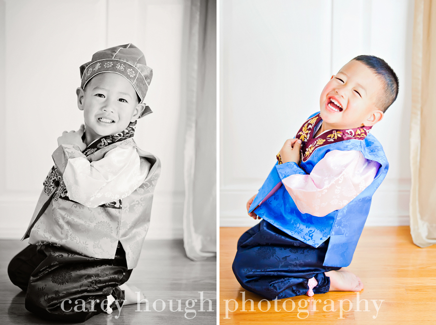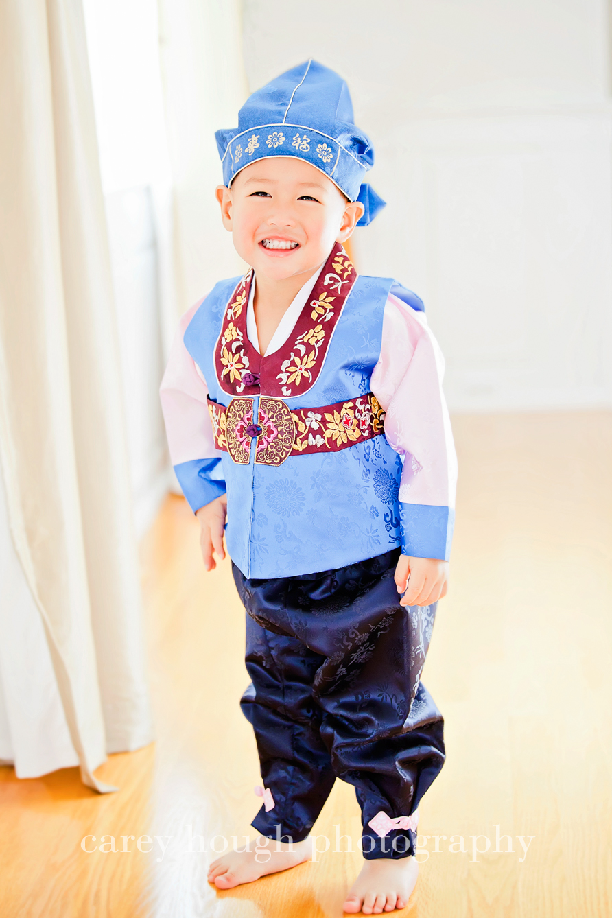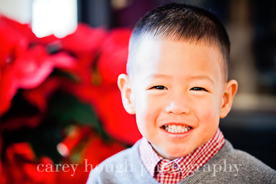 First we have my little buddy R.  His Mom and Dad wanted to do a Christmas-y session to get some pictures for their holiday cards (which is why I waited to post until after everyone got them – no one wants to ruin the surprise of the card!) They also wanted to get some pictures in his hanbok, a beautiful and traditional South Korean outfit.  R was a little hesitant with me at first, but we bonded over Red from Cars (lucky me for having a boy who watches it twice a day everyday – I’m well versed in the characters of Cars) and beating up on a poinsettia plant (sorry Mom!).  Pretty soon he was all smiles and hamming it up for the camera!